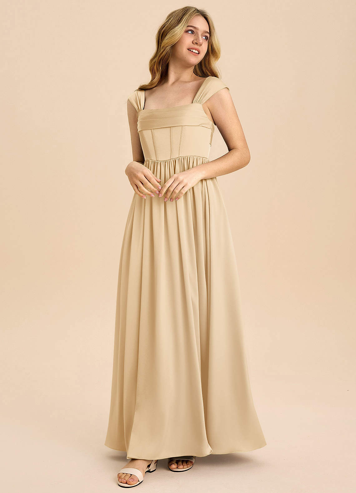 Linia A Pofałdowany Satyna elastyczna Długość podłogi Młodsza druhna Sukienka