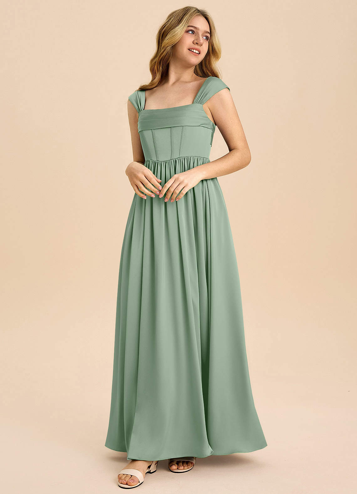 Linia A Pofałdowany Satyna elastyczna Długość podłogi Młodsza druhna Sukienka