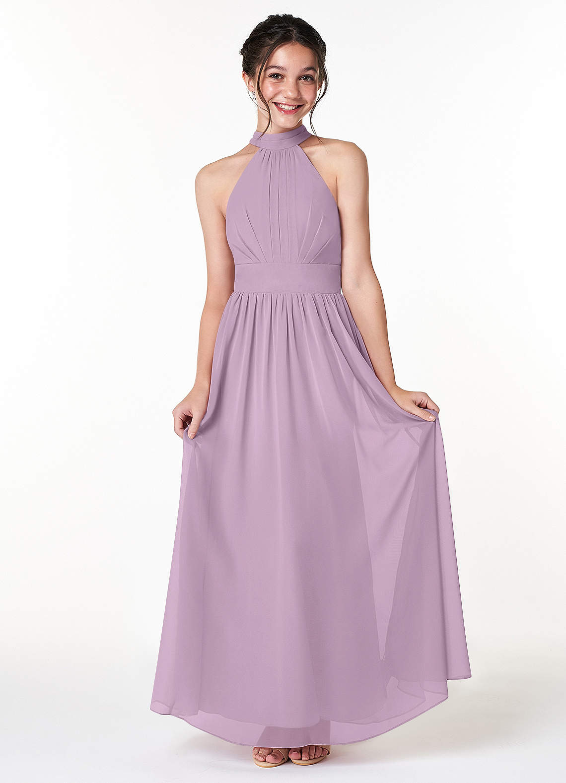 Linia A Pofałdowany Szyfon Długość podłogi Młodsza druhna Sukienka