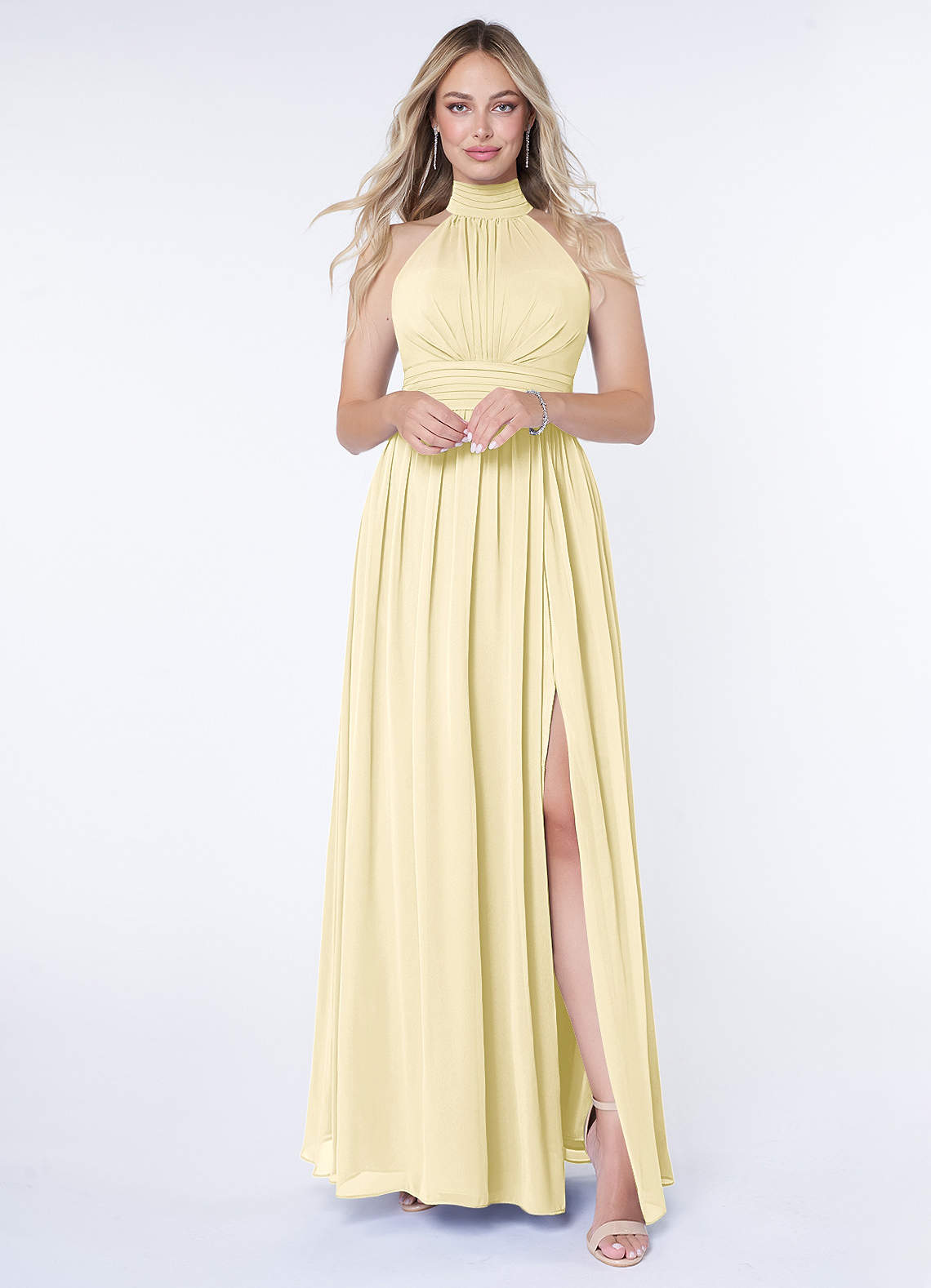 Linia A Marszczony Szyfon Do ziemi Sukienka