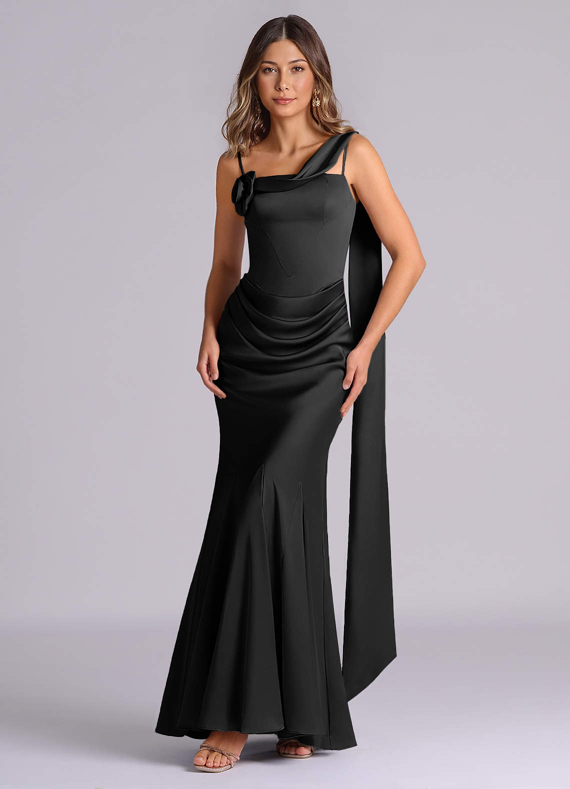 Syrena Pofałdowany Satyna elastyczna Do ziemi Sukienka