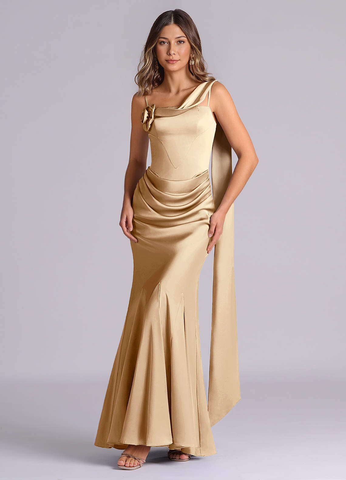 Syrena Pofałdowany Satyna elastyczna Do ziemi Sukienka