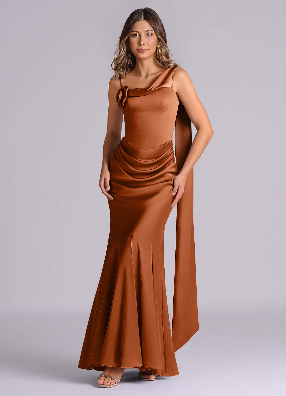 Syrena Pofałdowany Satyna elastyczna Do ziemi Sukienka