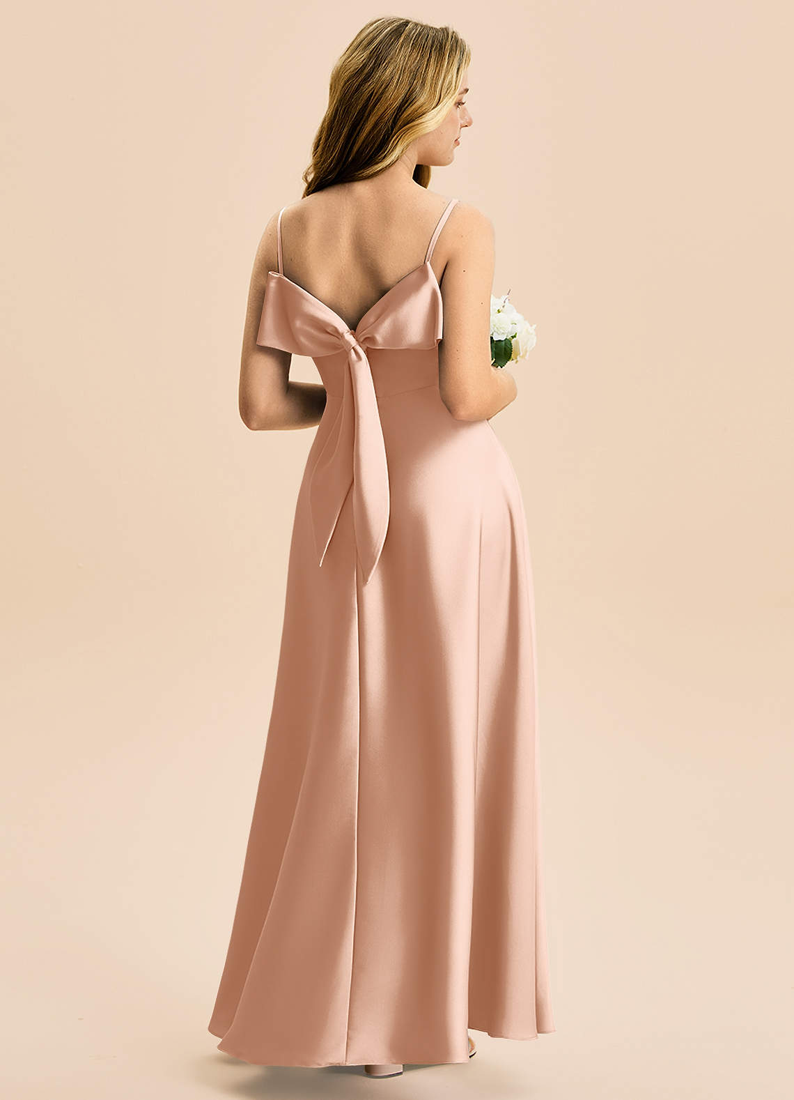 Linia A Pofałdowany Satyna elastyczna Długość podłogi Młodsza druhna Sukienka