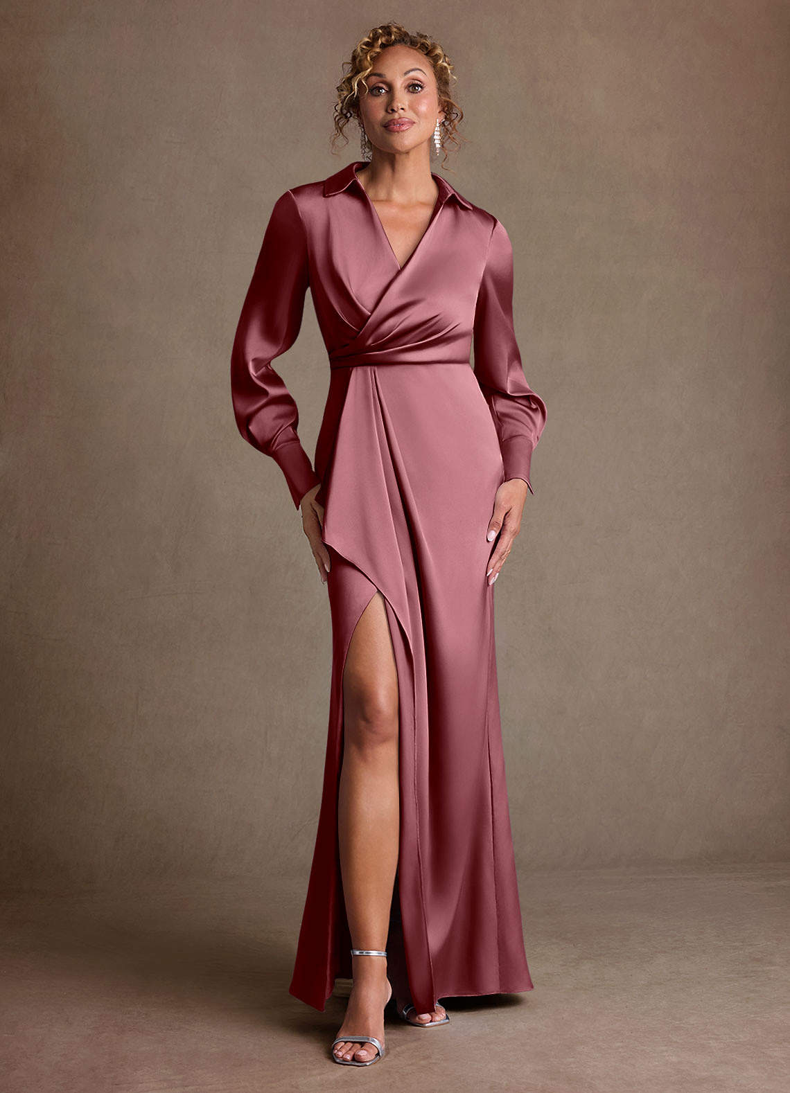 Osłona Pofałdowany Satyna elastyczna Długość podłogi Sukienka