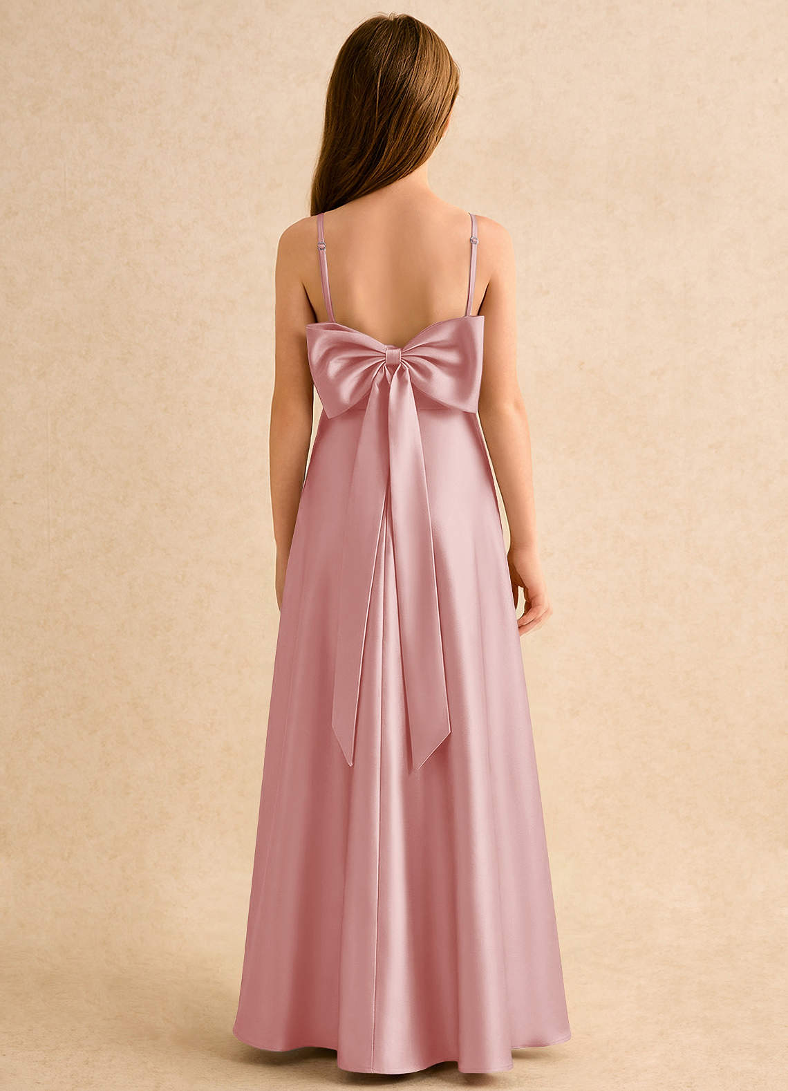 Linia A Pofałdowany Satyna elastyczna Długość podłogi Sukienka