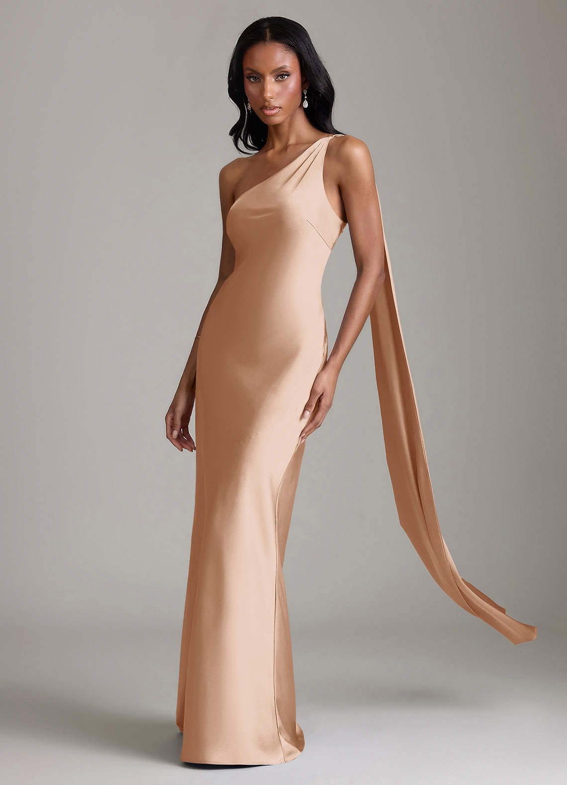 Syrena Jedno ramię Satyna elastyczna Do ziemi Sukienka