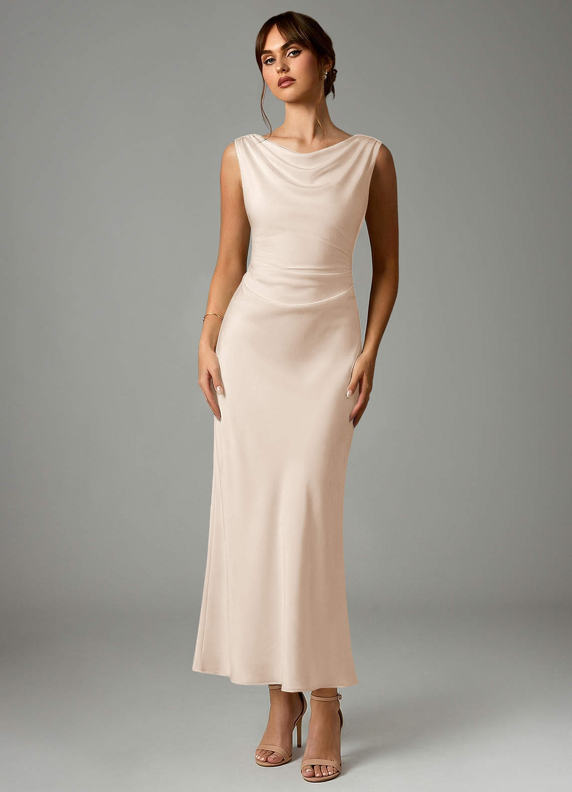 Syrena Pofałdowany Satyna elastyczna Długość kostki Sukienka