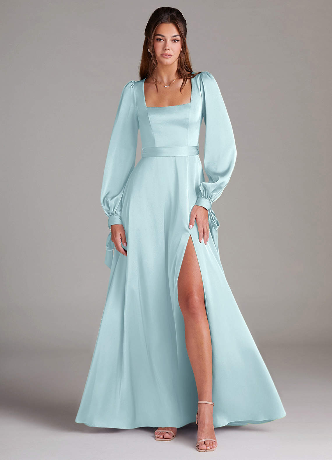 Linia A Długi rękaw Satyna elastyczna Do ziemi Sukienka