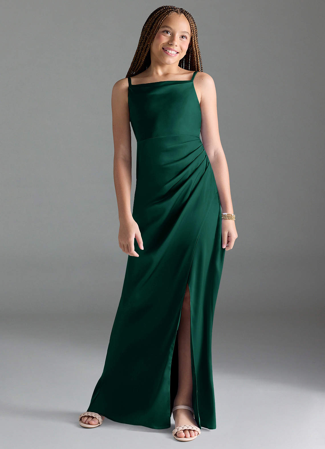 Linia A Pofałdowany Satyna elastyczna Długość podłogi Młodsza druhna Sukienka