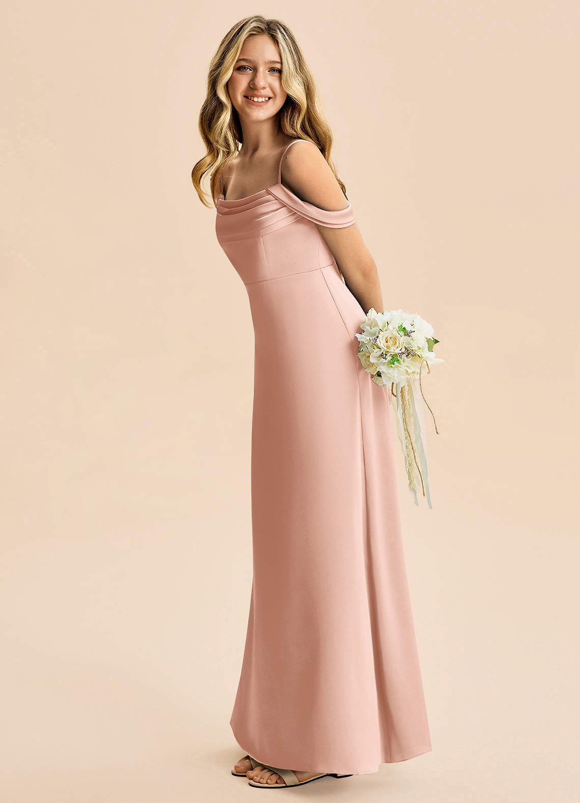 Linia A Zza ramienia Satyna elastyczna Długość podłogi Młodsza druhna Sukienka