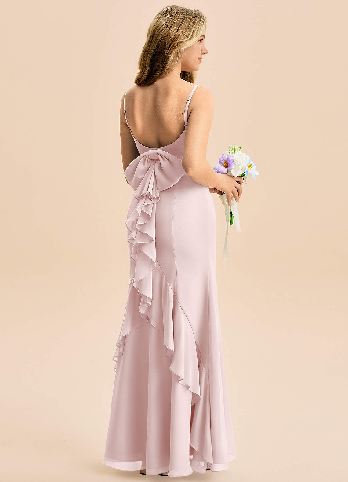 Syrena Ukłon Szyfon Długość podłogi Młodsza druhna Sukienka