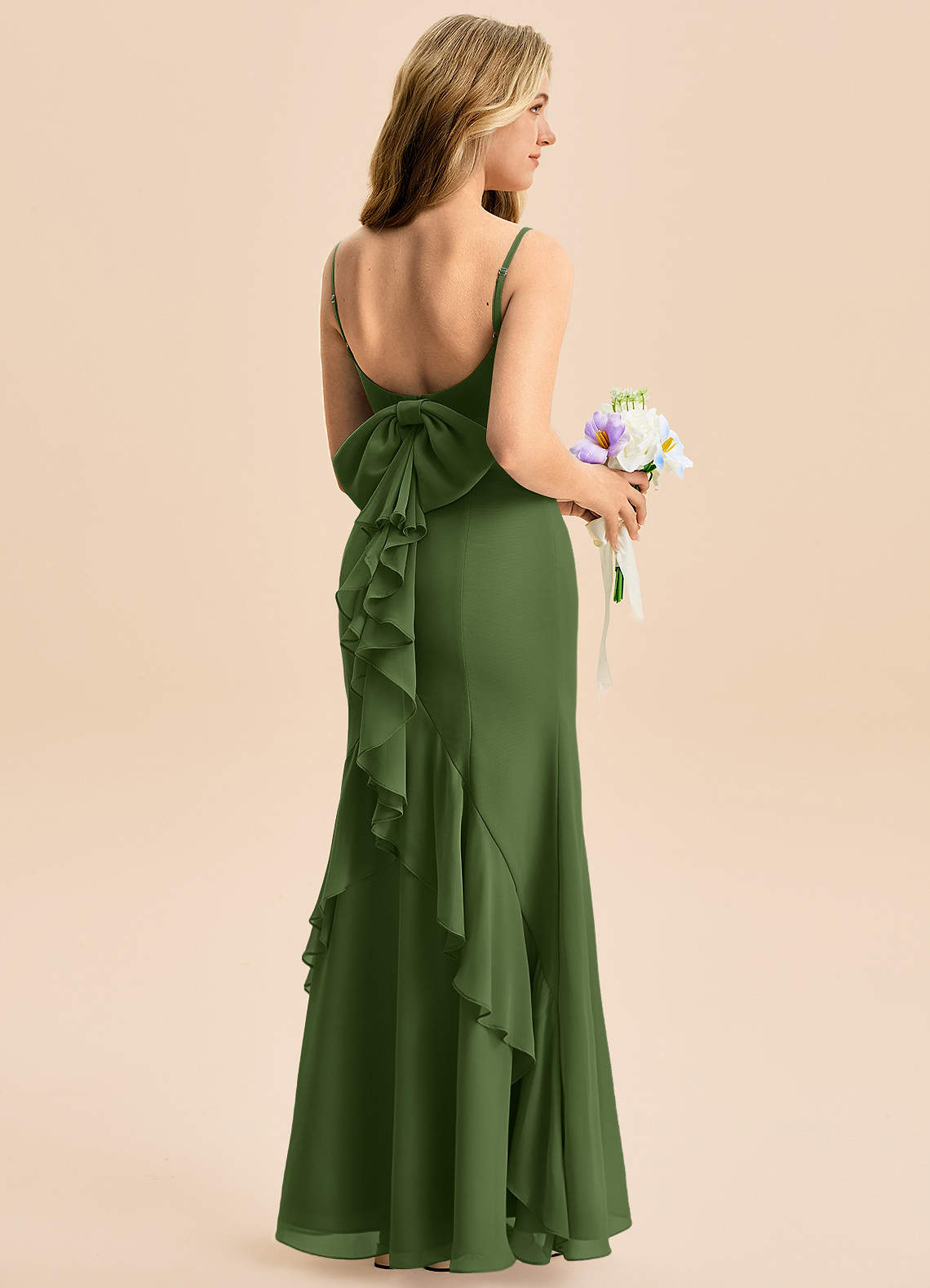 Syrena Ukłon Szyfon Długość podłogi Młodsza druhna Sukienka