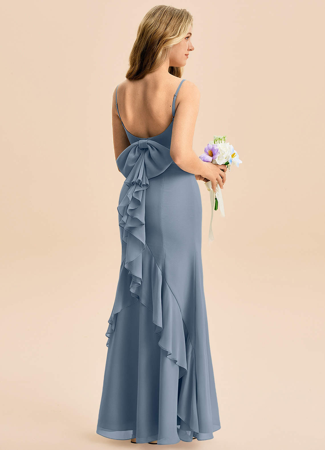 Syrena Ukłon Szyfon Długość podłogi Młodsza druhna Sukienka