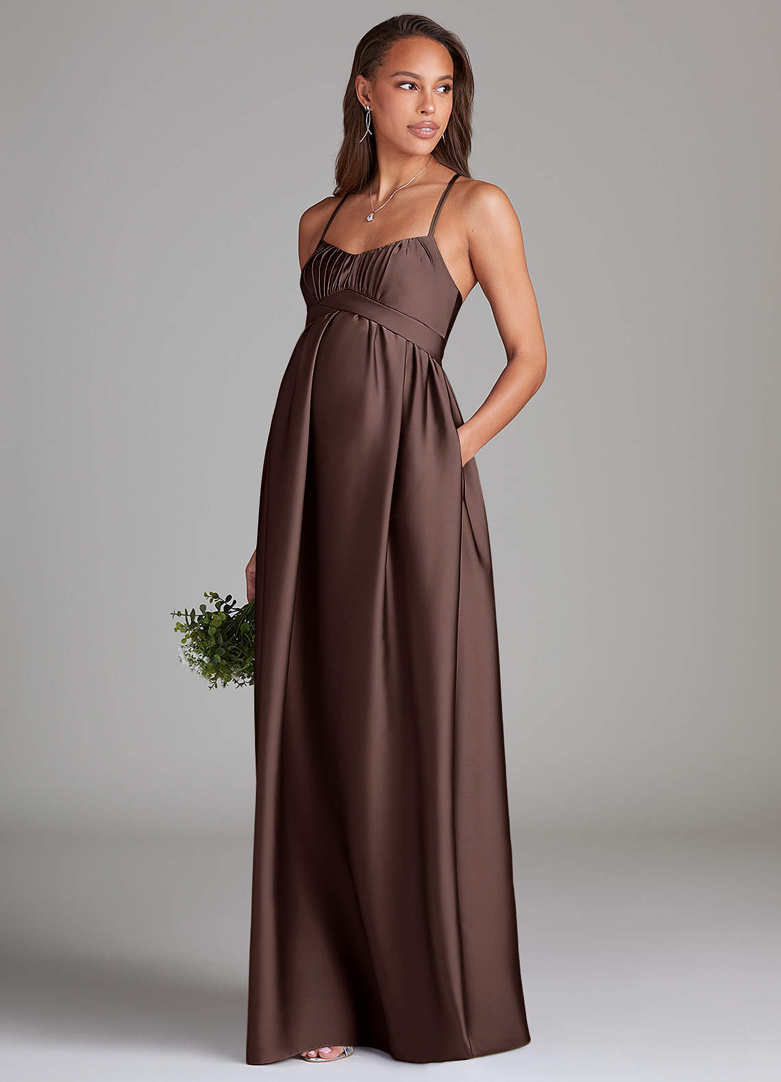 Linia A z kieszeniami Satyna elastyczna Długość podłogi Sukienka Ganache