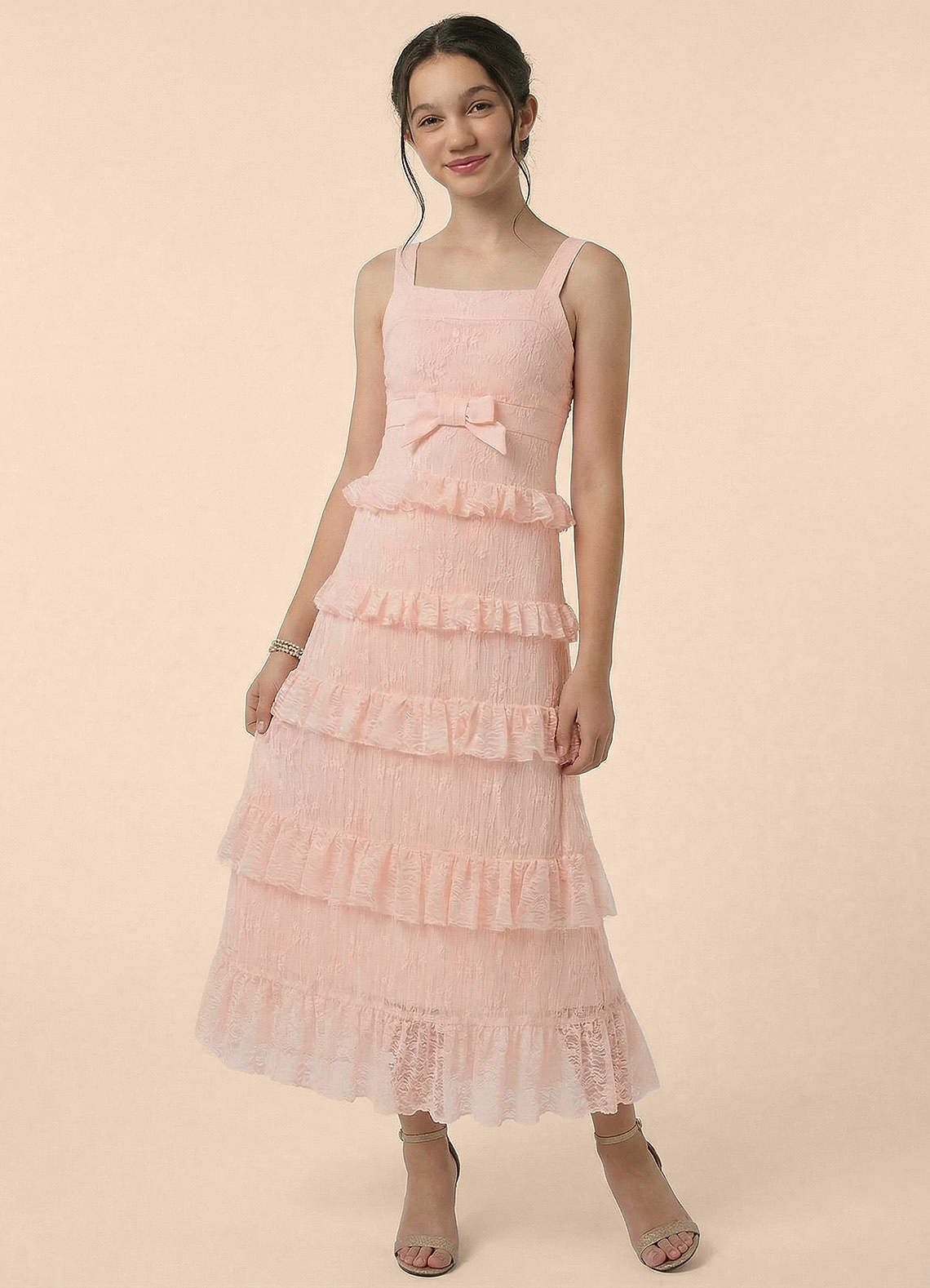 Linia A Koronka Sznurówka Długość kostki Młodsza druhna Sukienka