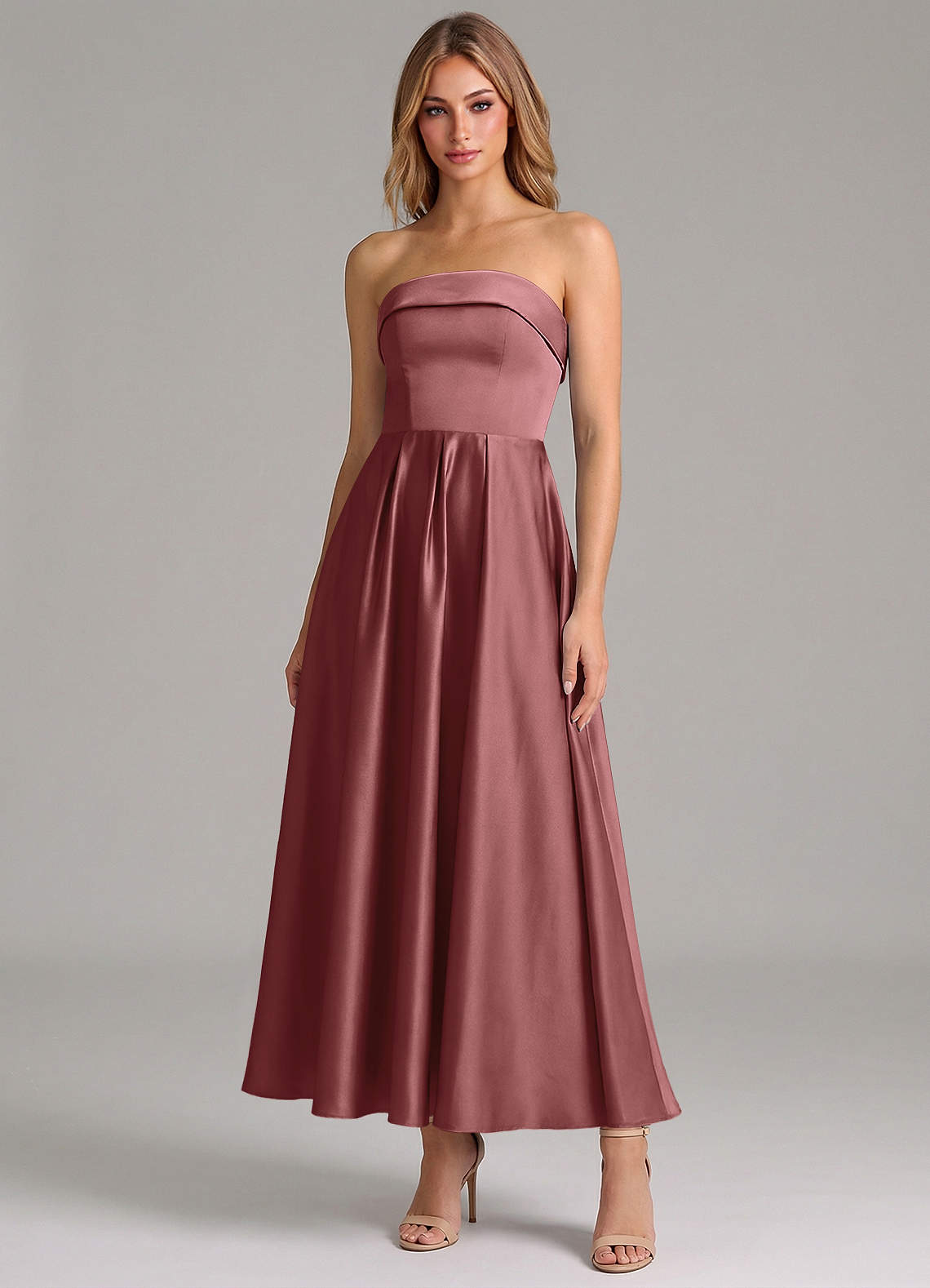Linia A Pofałdowany Satyna elastyczna Długość kostki Sukienka