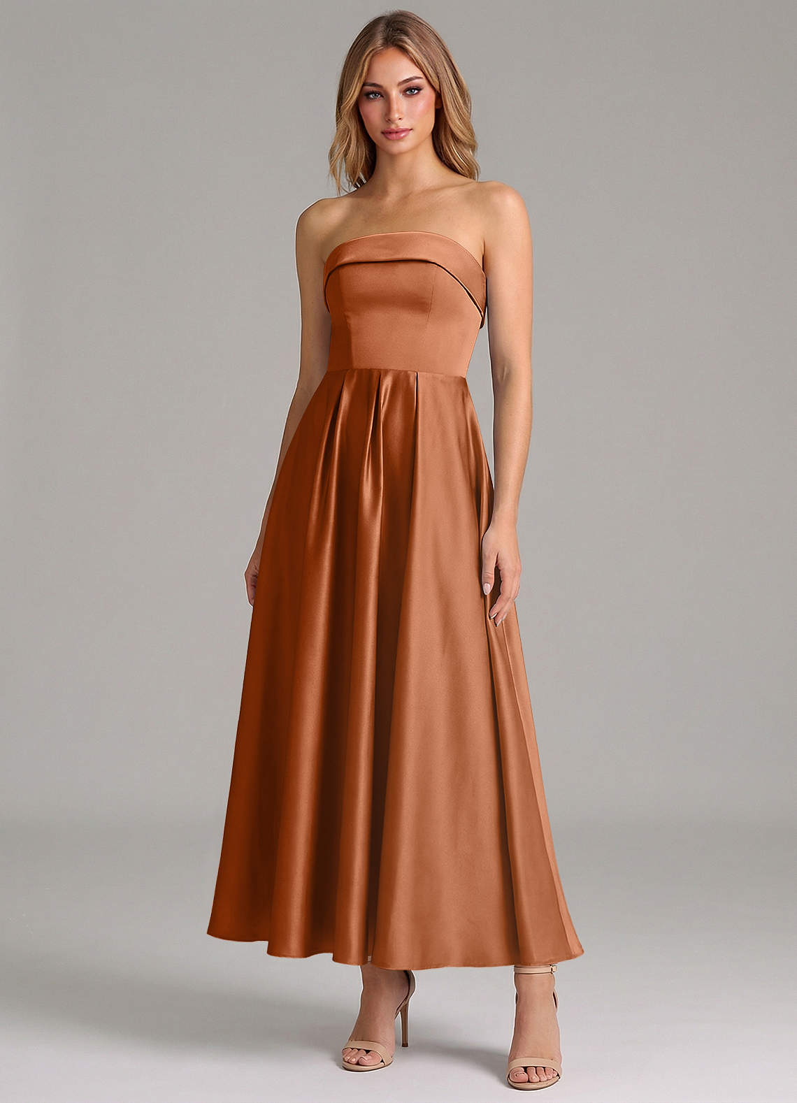 Linia A Pofałdowany Satyna elastyczna Długość kostki Sukienka