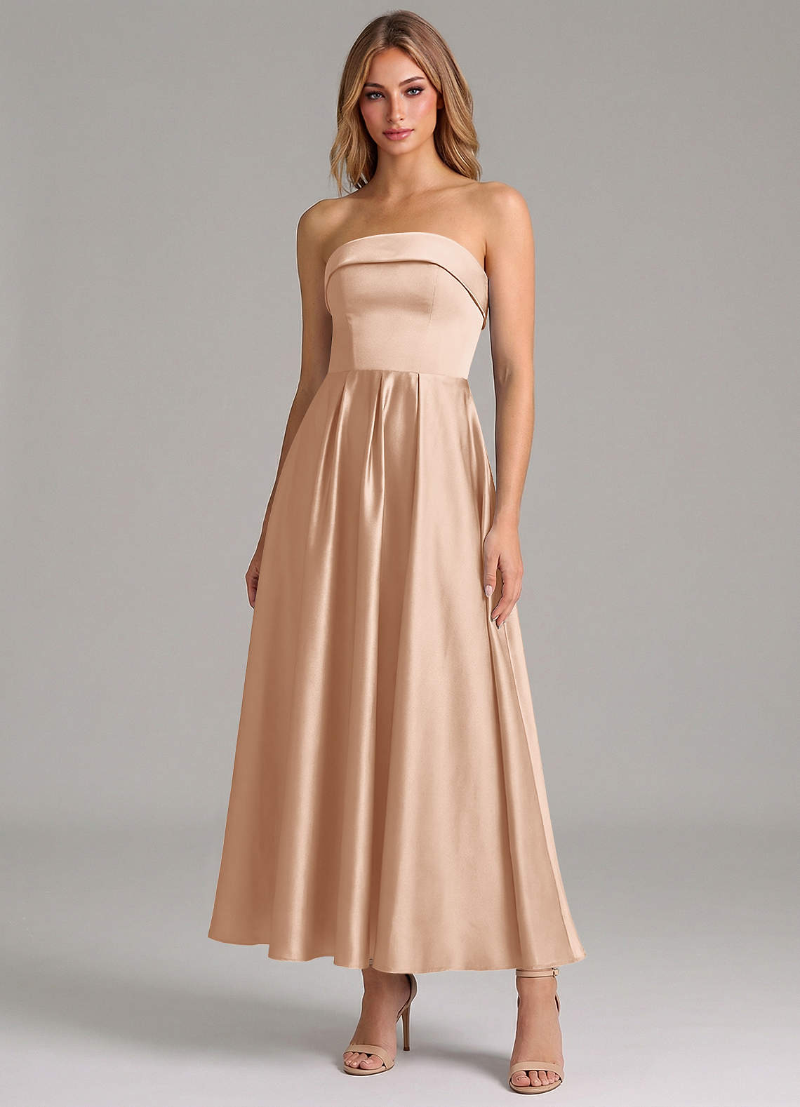 Linia A Pofałdowany Satyna elastyczna Długość kostki Sukienka