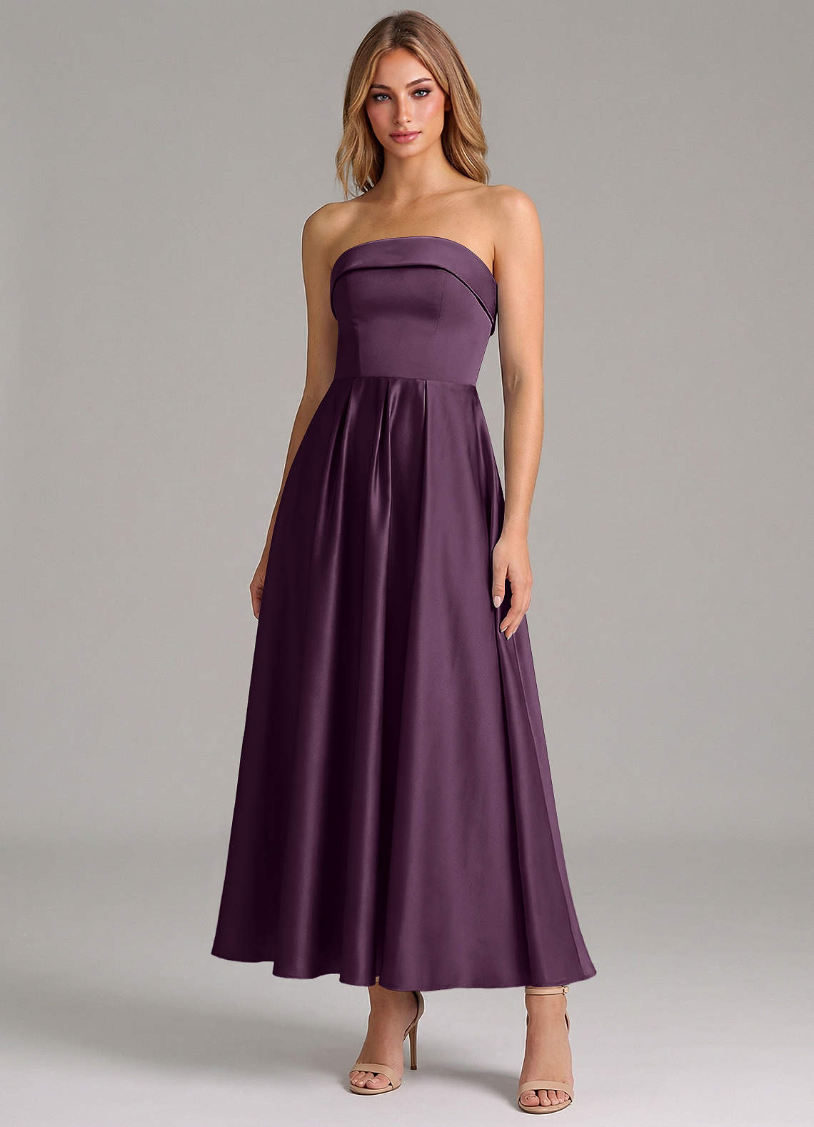 Linia A Pofałdowany Satyna elastyczna Długość kostki Sukienka