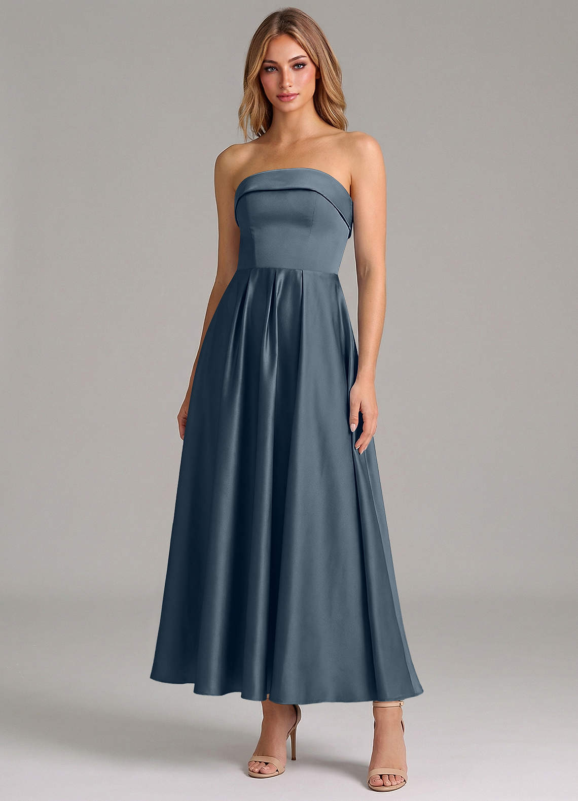 Linia A Pofałdowany Satyna elastyczna Długość kostki Sukienka