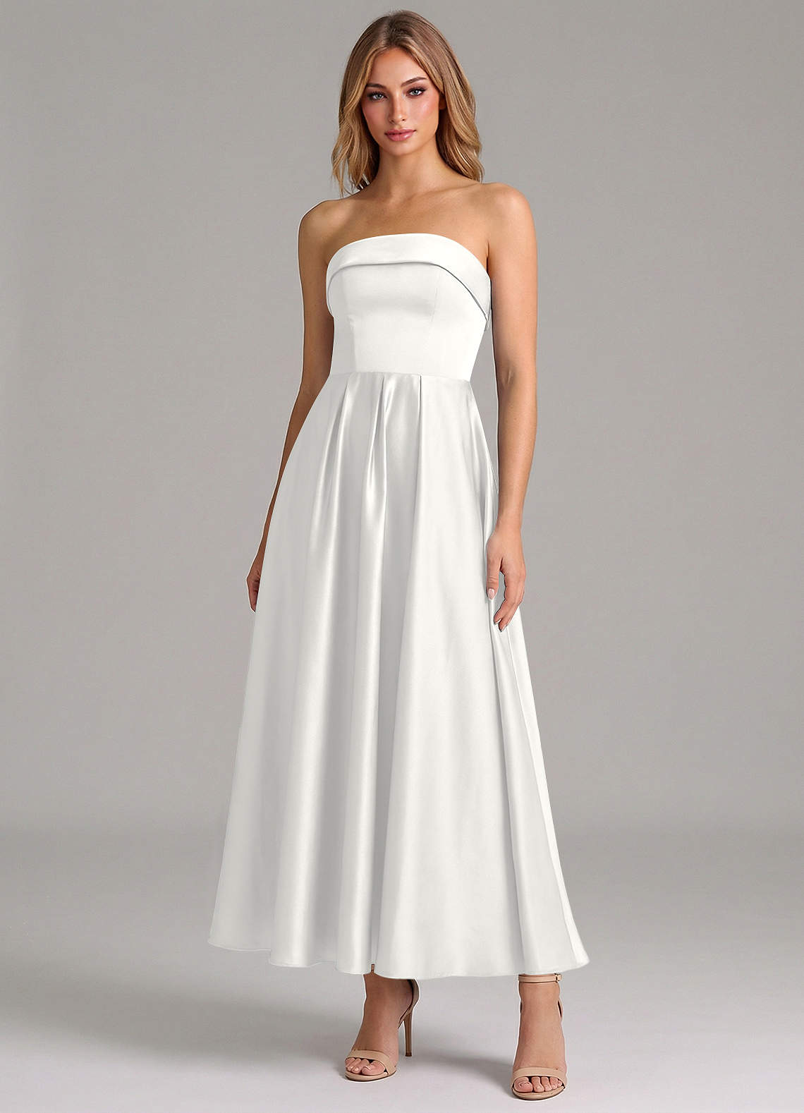 Linia A Pofałdowany Satyna elastyczna Długość kostki Sukienka