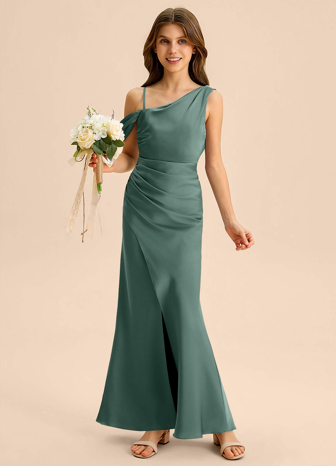 Osłona Zza ramienia Satyna elastyczna Długość podłogi Młodsza druhna Sukienka