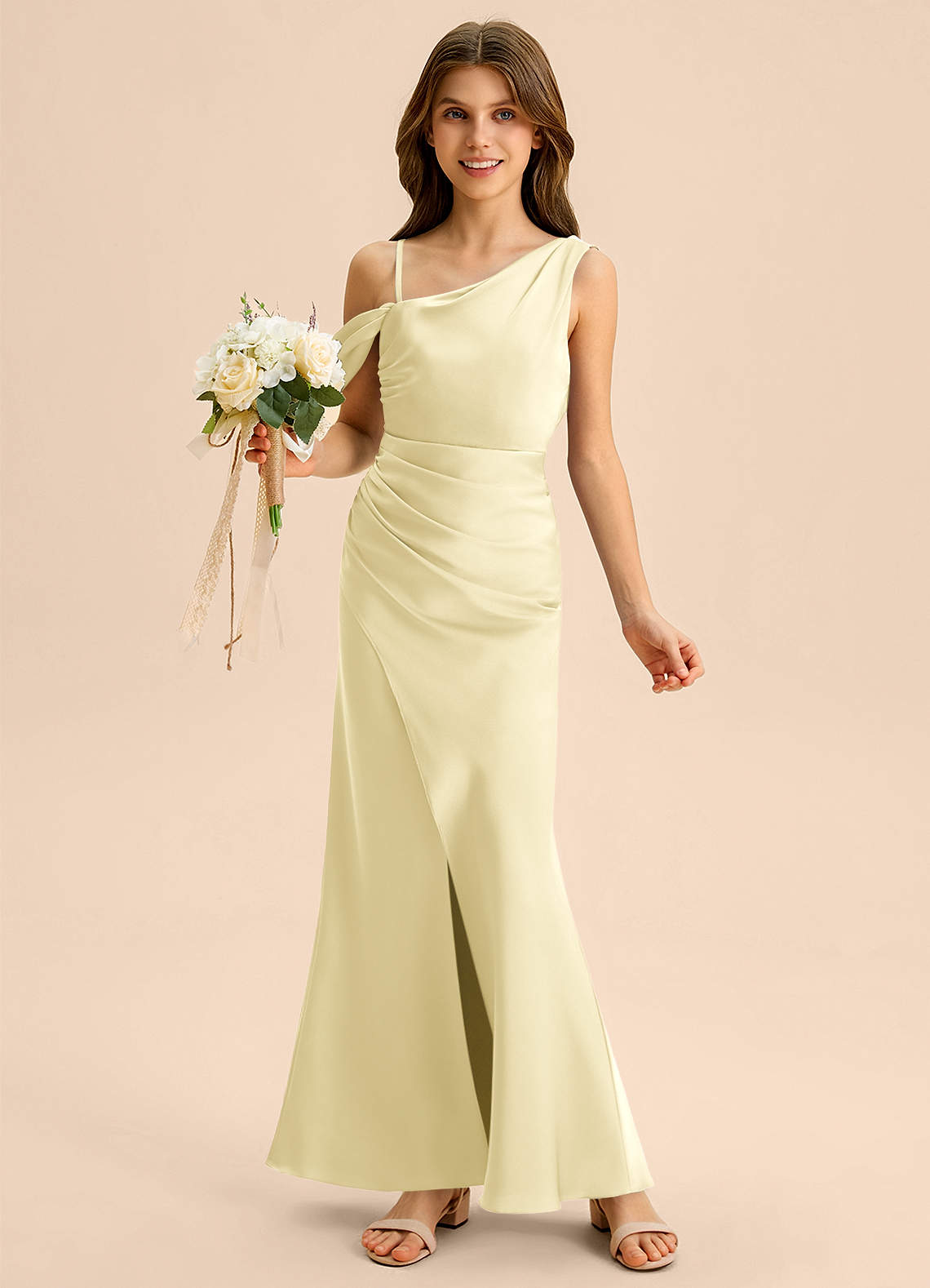 Osłona Zza ramienia Satyna elastyczna Długość podłogi Młodsza druhna Sukienka