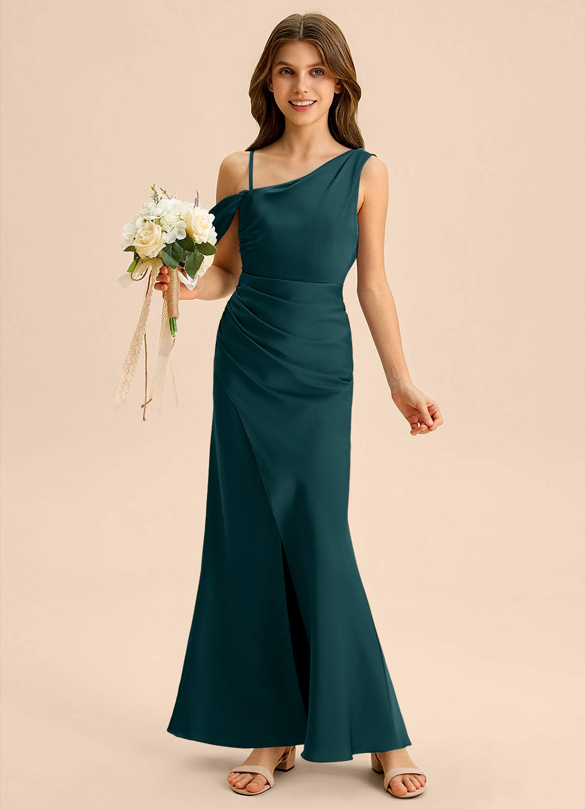 Osłona Zza ramienia Satyna elastyczna Długość podłogi Młodsza druhna Sukienka