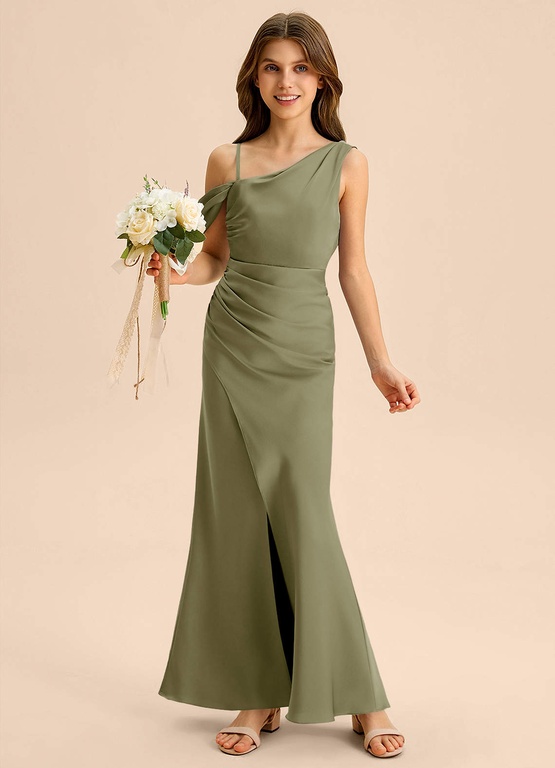 Osłona Zza ramienia Satyna elastyczna Długość podłogi Młodsza druhna Sukienka