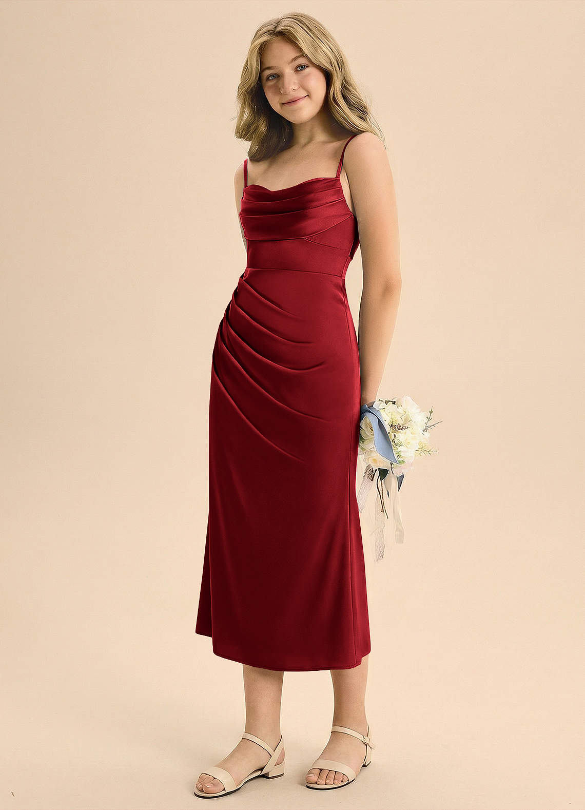 Osłona Pofałdowany Satyna elastyczna Długość herbaty Młodsza druhna Sukienka