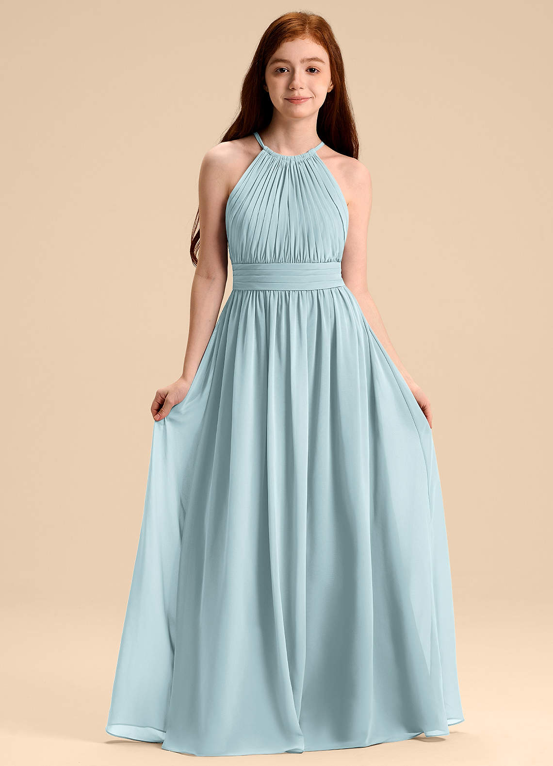 Linia A Pofałdowany Szyfon Długość podłogi Młodsza druhna Sukienka