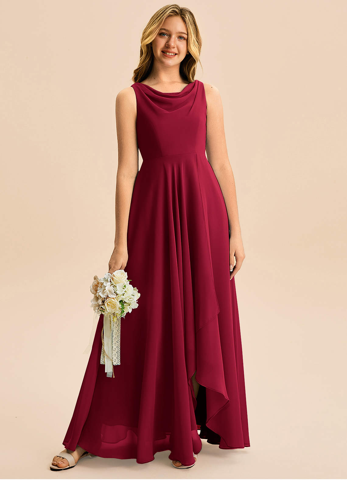 Linia A Pofałdowany Szyfon Asymetryczny Młodsza druhna Sukienka