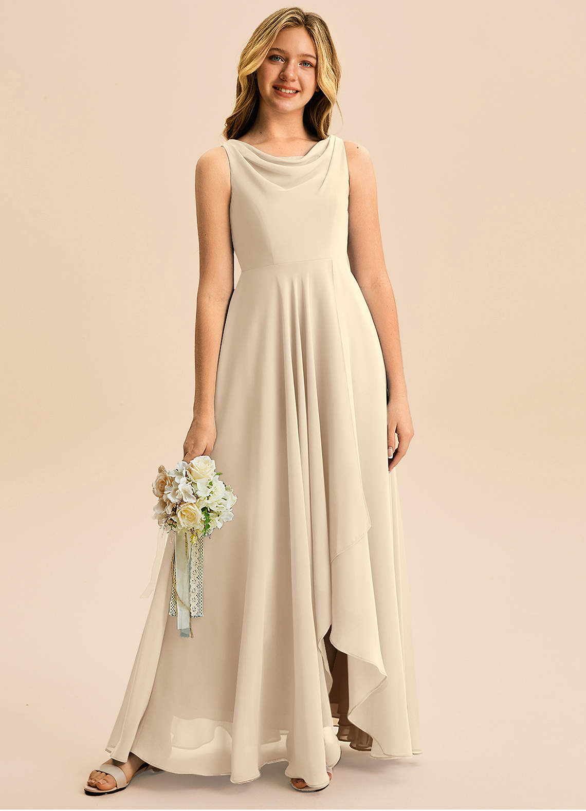 Linia A Pofałdowany Szyfon Asymetryczny Młodsza druhna Sukienka