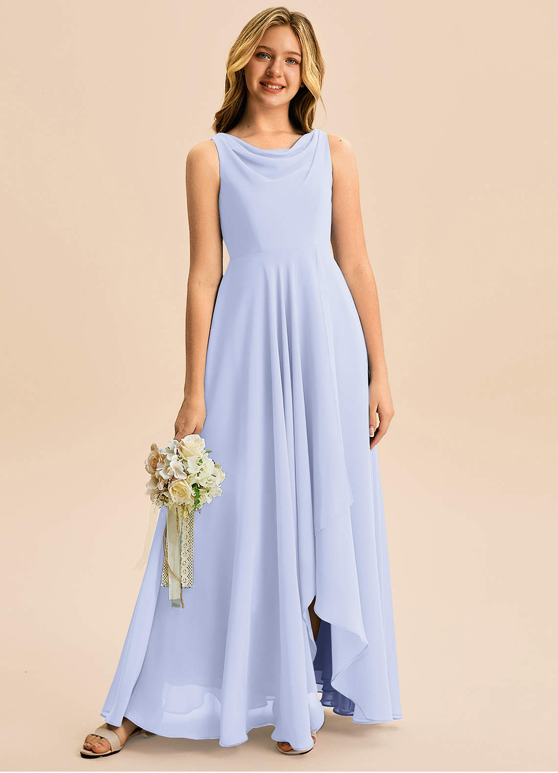 Linia A Pofałdowany Szyfon Asymetryczny Młodsza druhna Sukienka