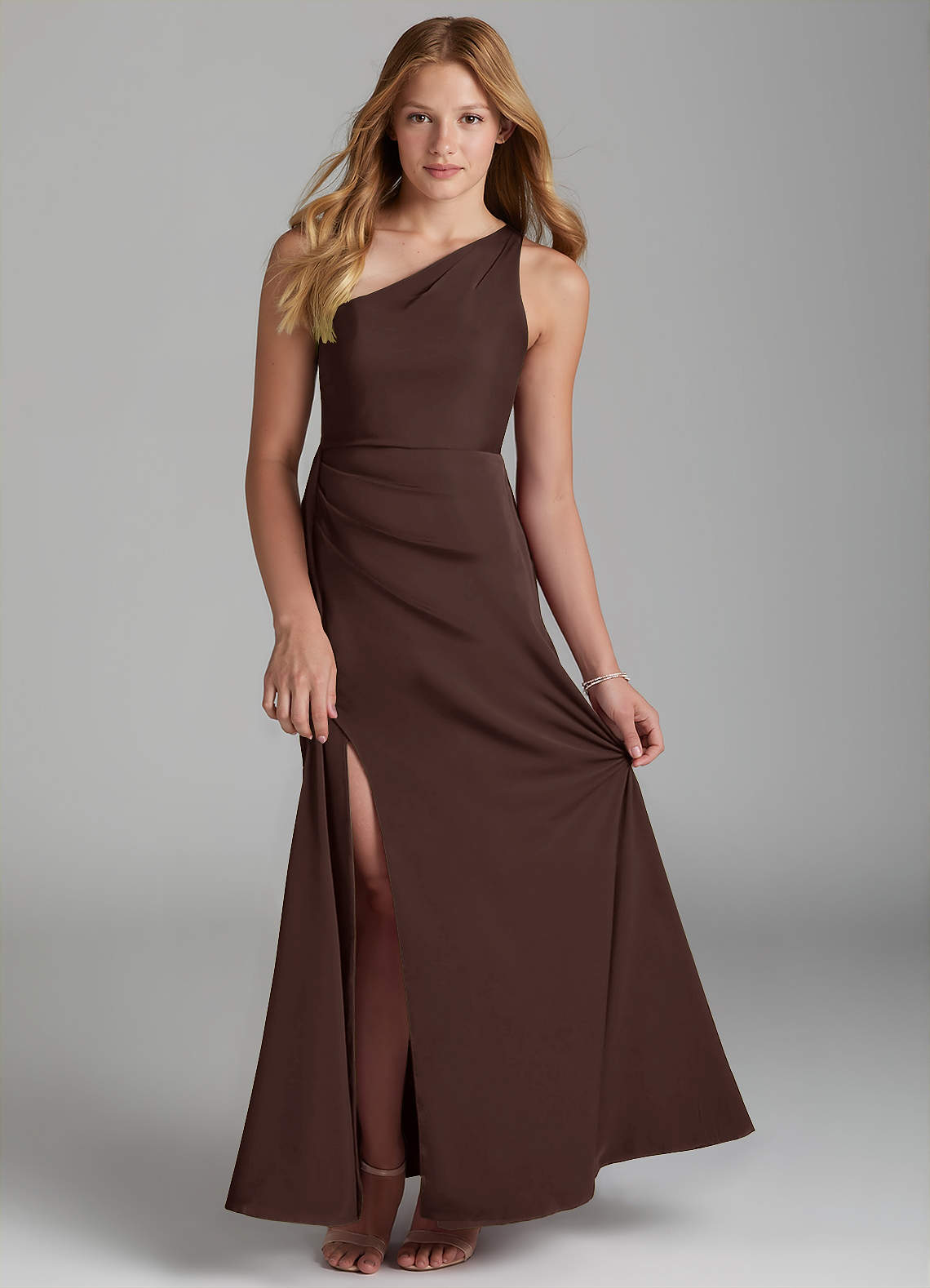Linia A Pofałdowany Satyna elastyczna Długość podłogi Młodsza druhna Sukienka
