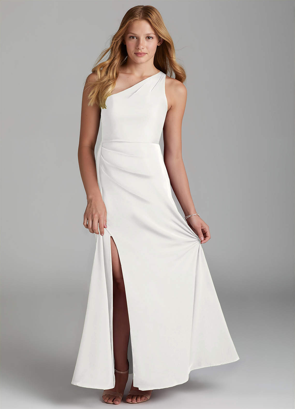 Linia A Pofałdowany Satyna elastyczna Długość podłogi Młodsza druhna Sukienka