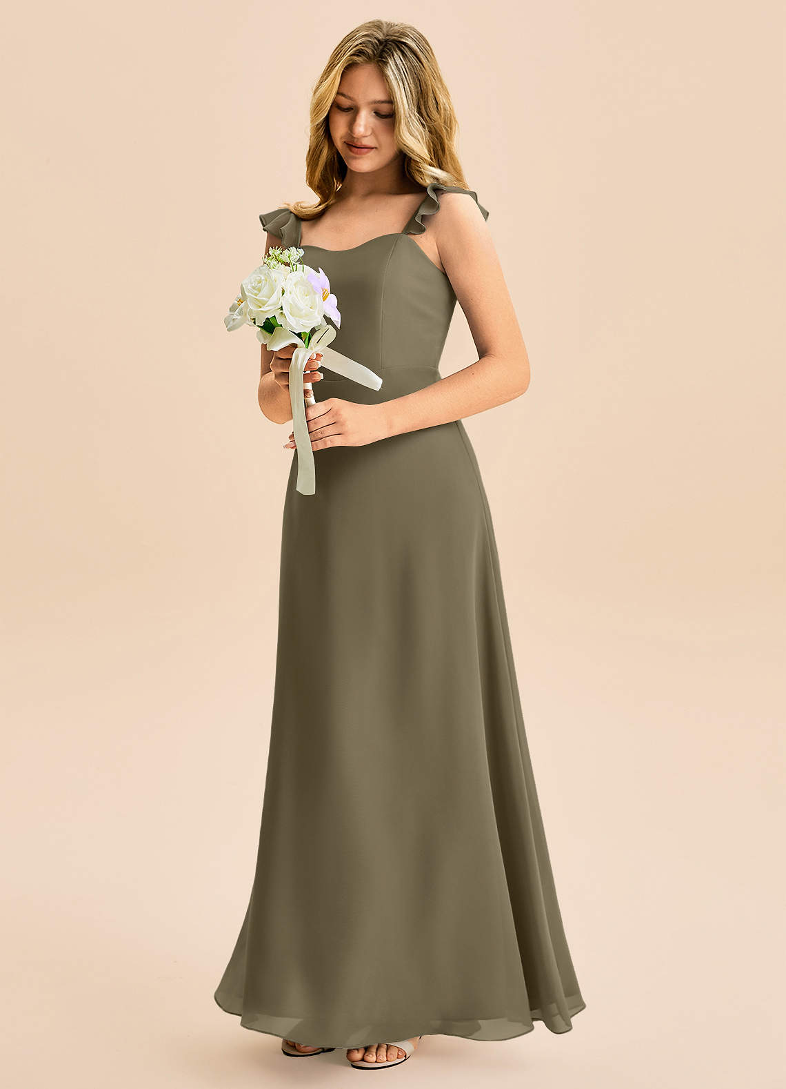 Linia A Marszczony Szyfon Długość podłogi Młodsza druhna Sukienka
