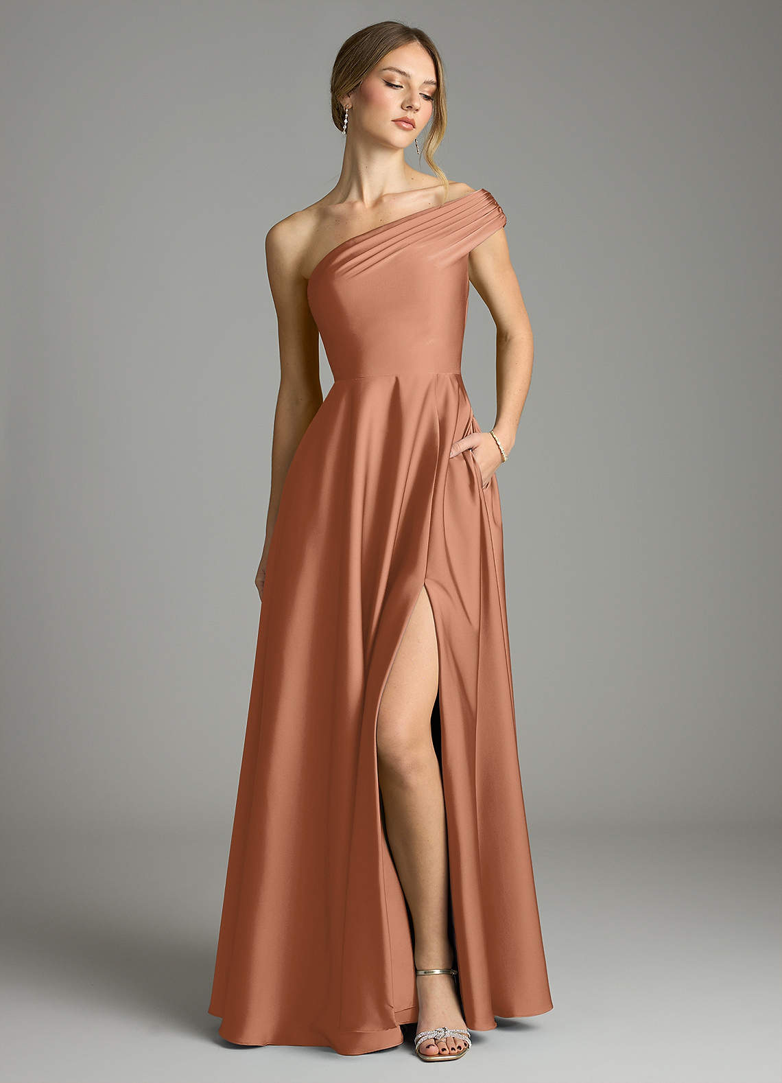 Linia A Zza ramienia Satyna elastyczna Do ziemi Sukienka