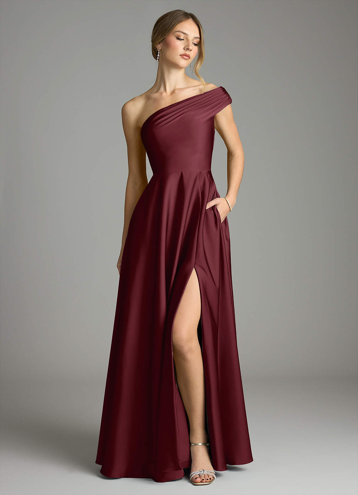 Linia A Zza ramienia Satyna elastyczna Do ziemi Sukienka