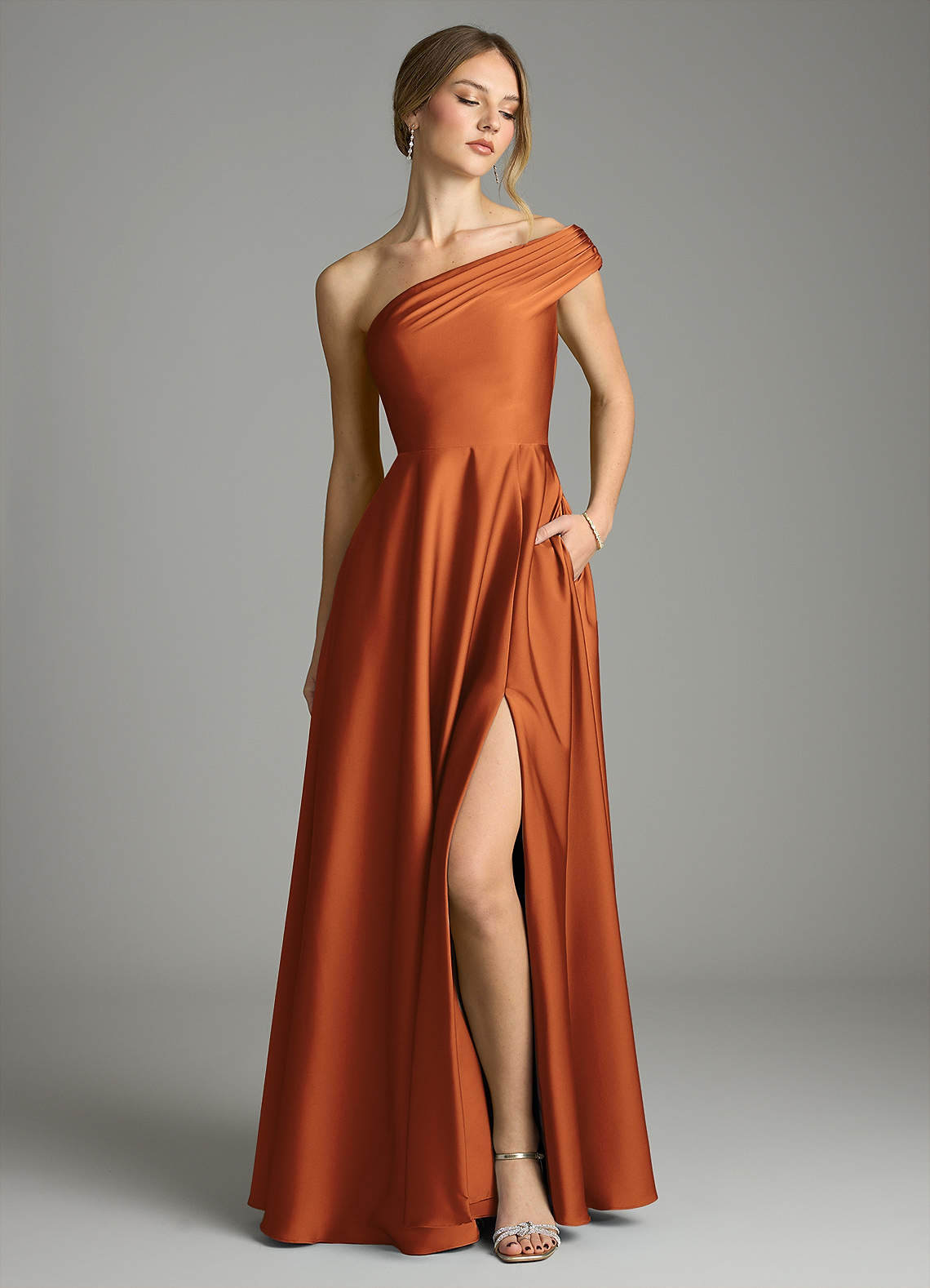 Linia A Zza ramienia Satyna elastyczna Do ziemi Sukienka