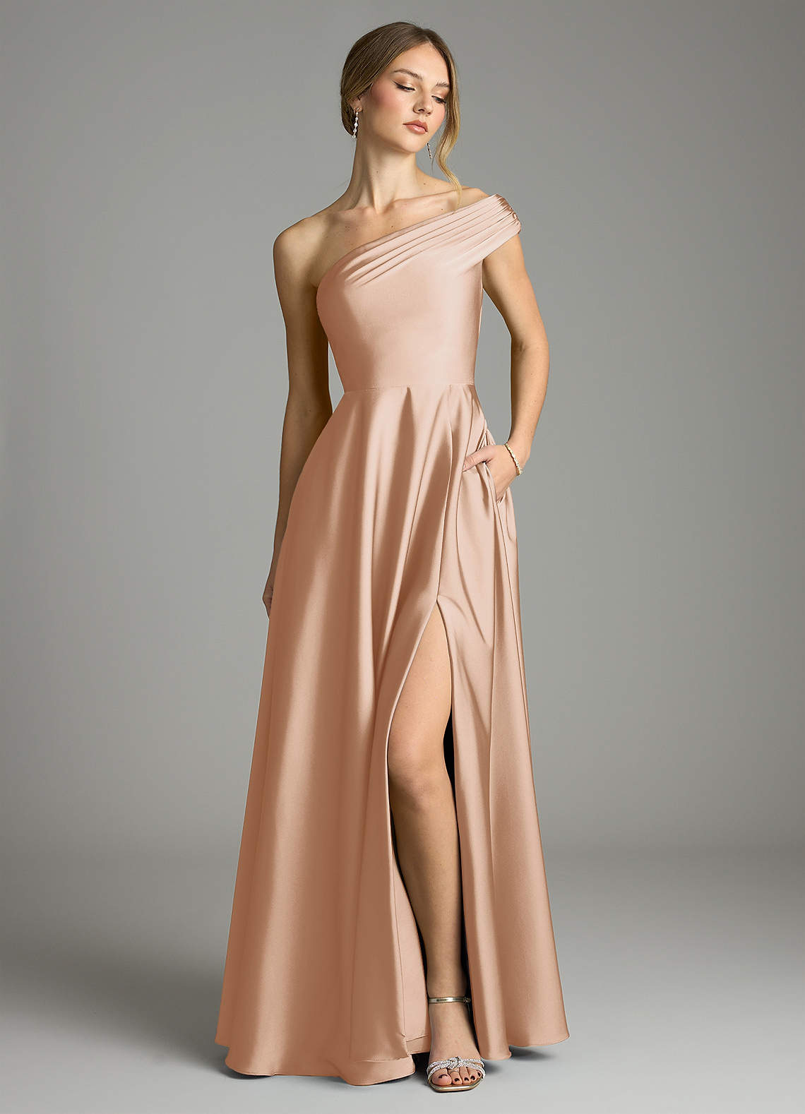 Linia A Zza ramienia Satyna elastyczna Do ziemi Sukienka