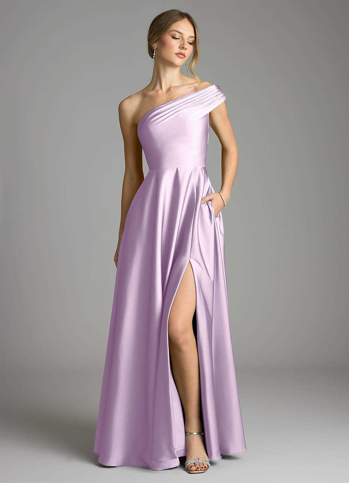 Linia A Zza ramienia Satyna elastyczna Do ziemi Sukienka