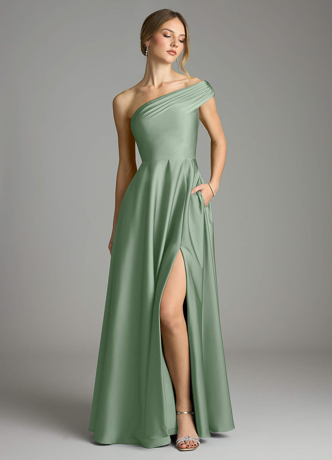Linia A Zza ramienia Satyna elastyczna Do ziemi Sukienka