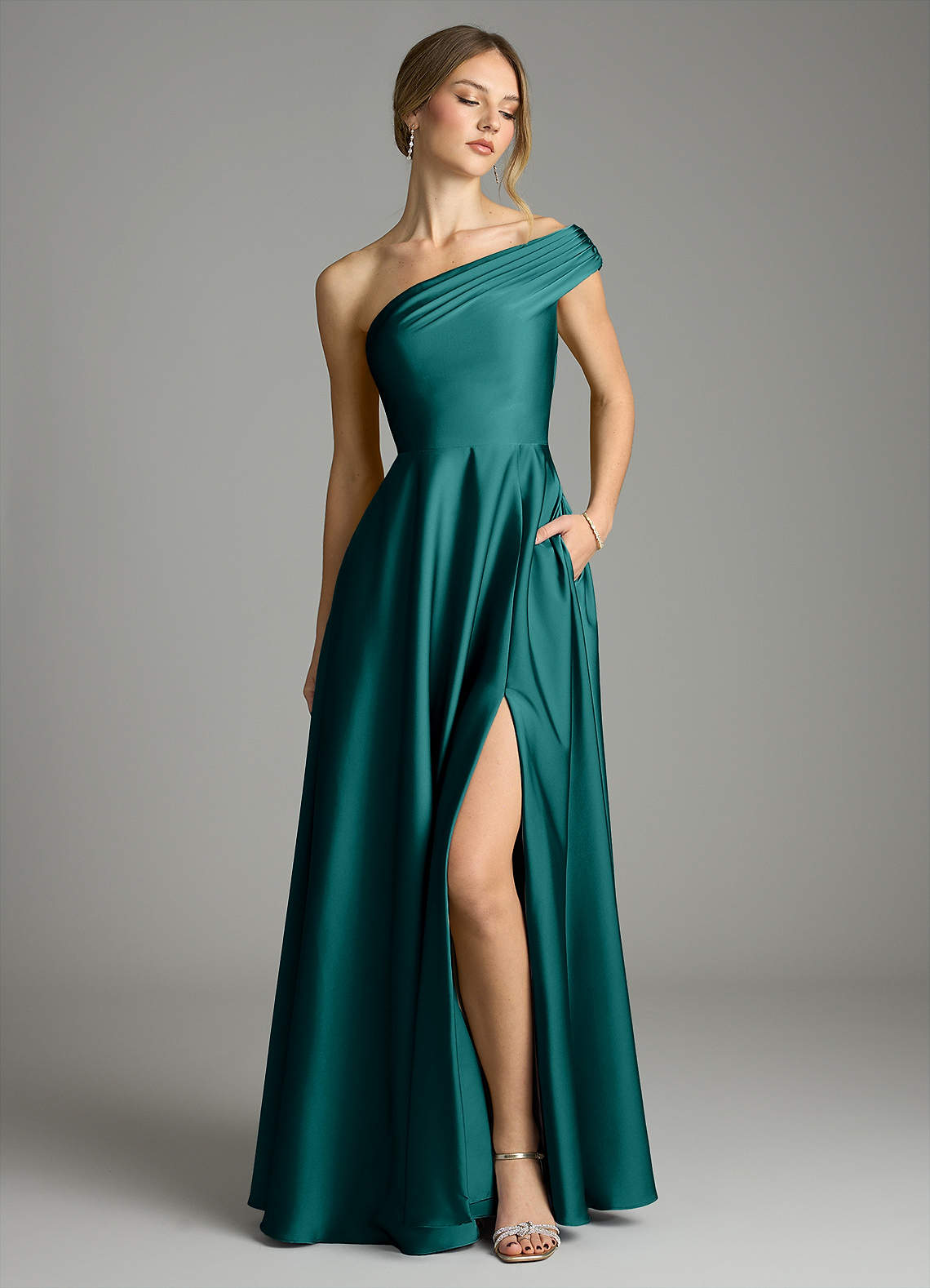 Linia A Zza ramienia Satyna elastyczna Do ziemi Sukienka