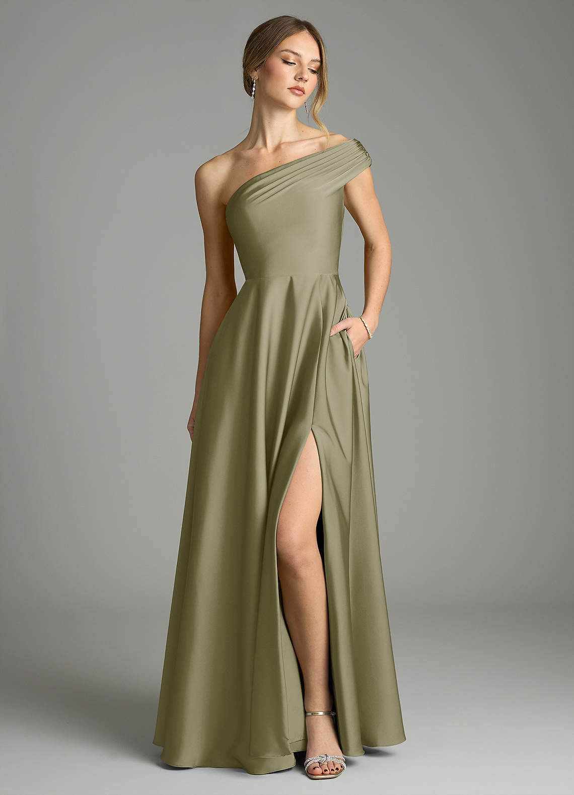 Linia A Zza ramienia Satyna elastyczna Do ziemi Sukienka