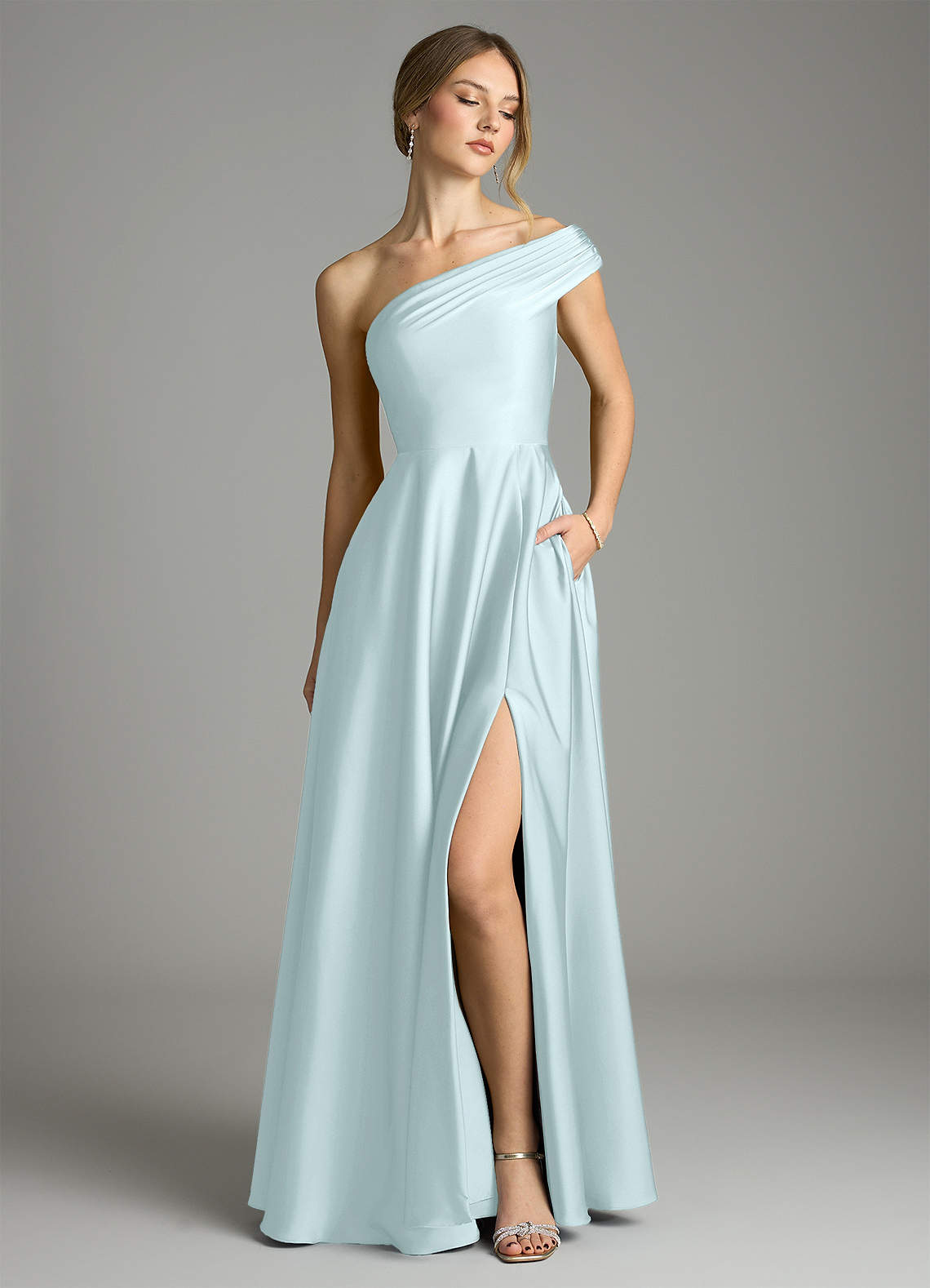Linia A Zza ramienia Satyna elastyczna Do ziemi Sukienka