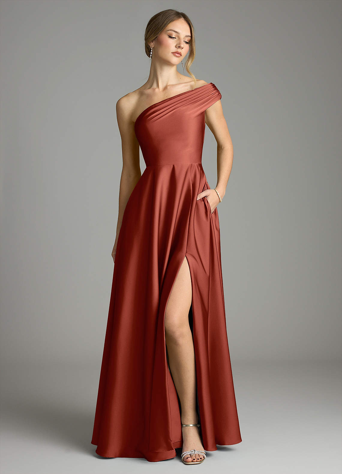 Linia A Zza ramienia Satyna elastyczna Do ziemi Sukienka