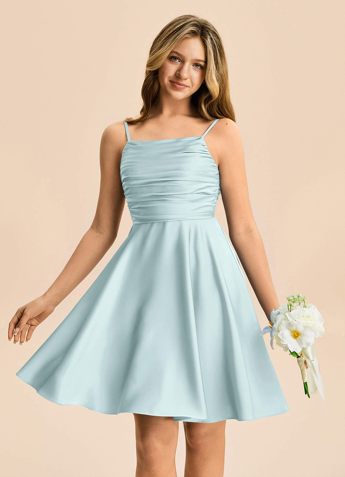 Linia A Pofałdowany Satyna elastyczna Mini Młodsza druhna Sukienka