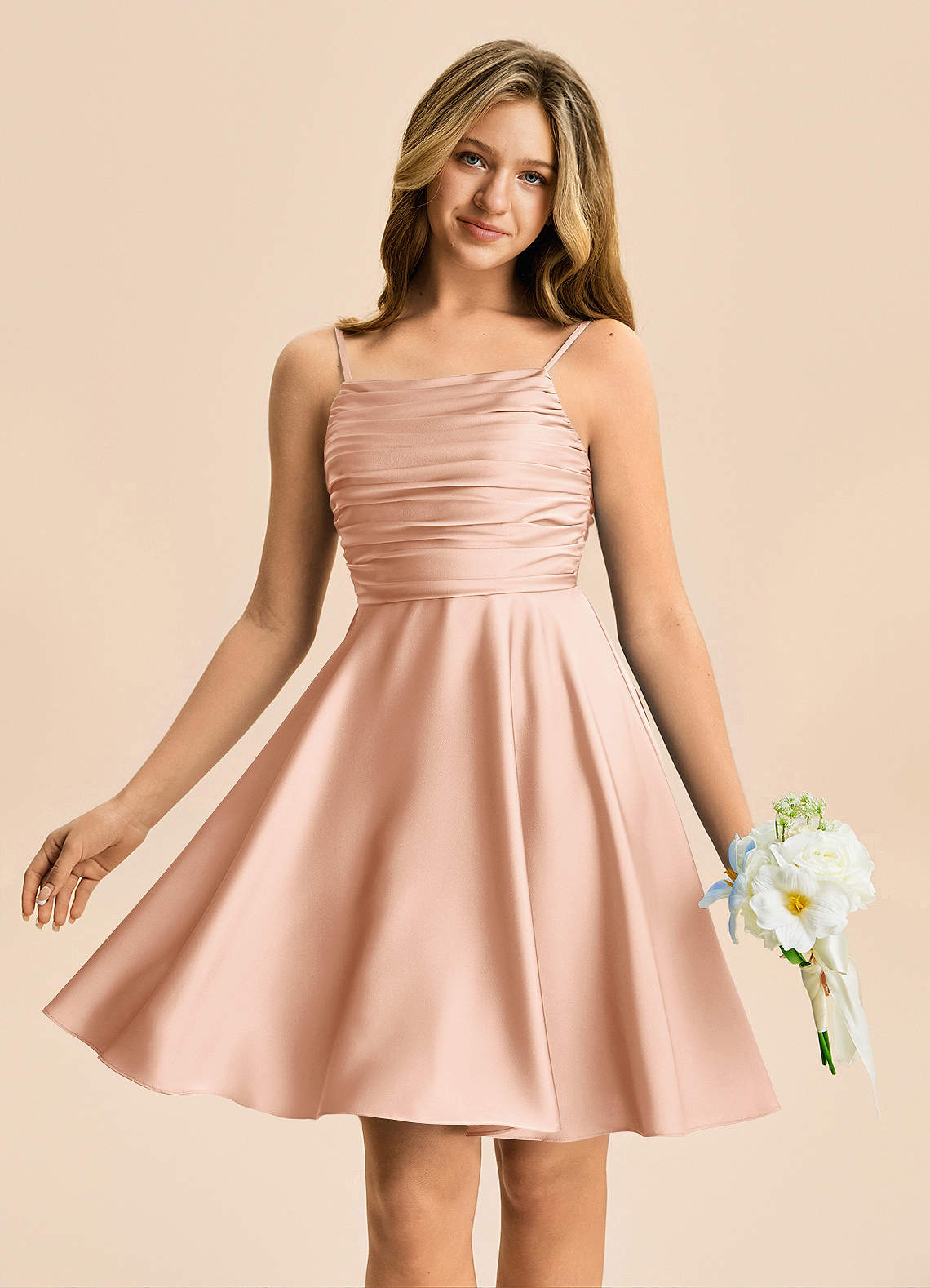 Linia A Pofałdowany Satyna elastyczna Mini Młodsza druhna Sukienka